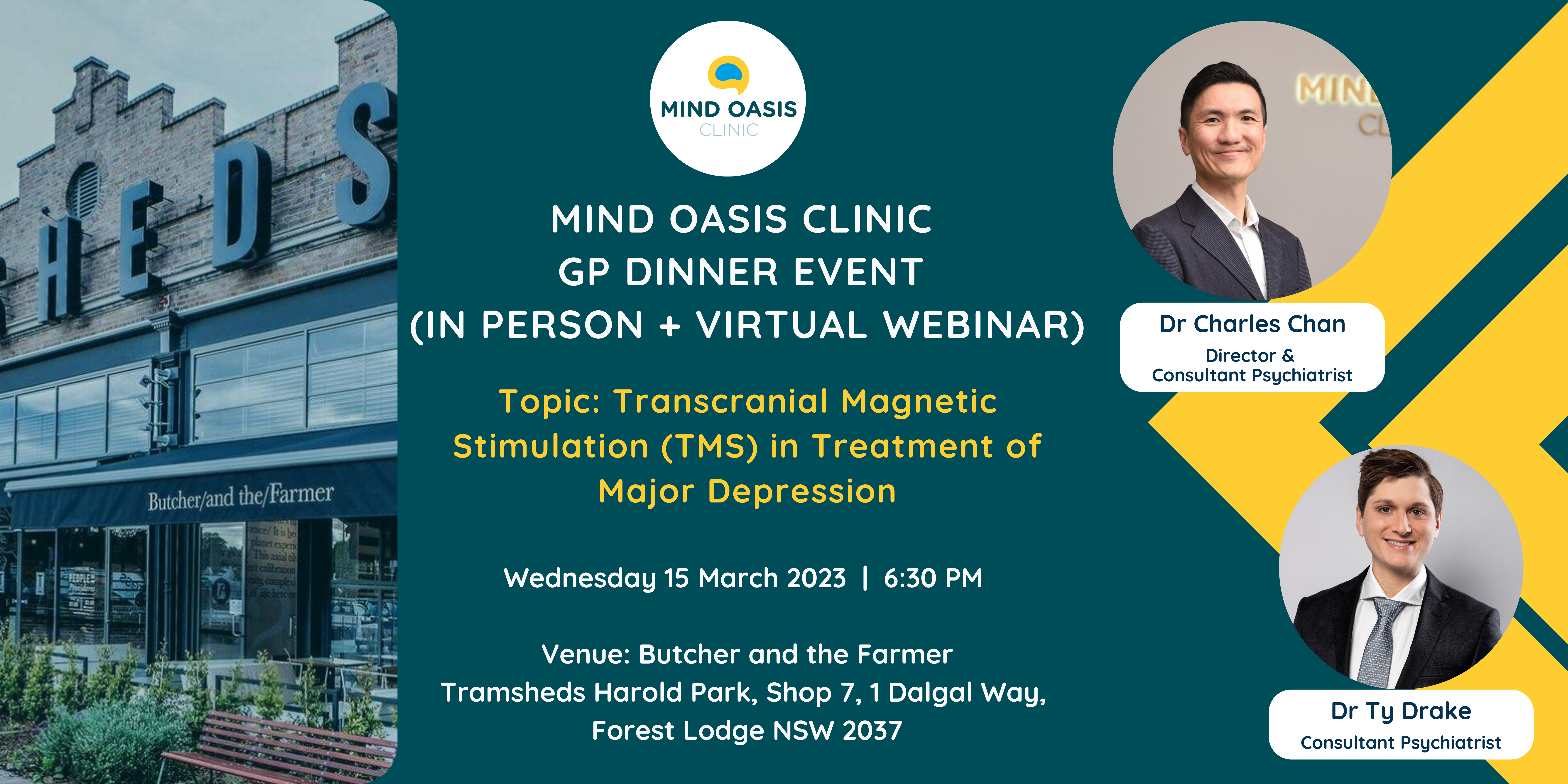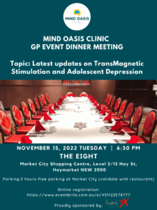 Mind Oasis Clinic is committed to the ongoing education of general practitioners and the wider medical community. We run a series of GP education events every year. Upcoming GP Events will be published as follow: IN PERSON ONLINE EVENT OUR PAST GP EVENTS ; ;
